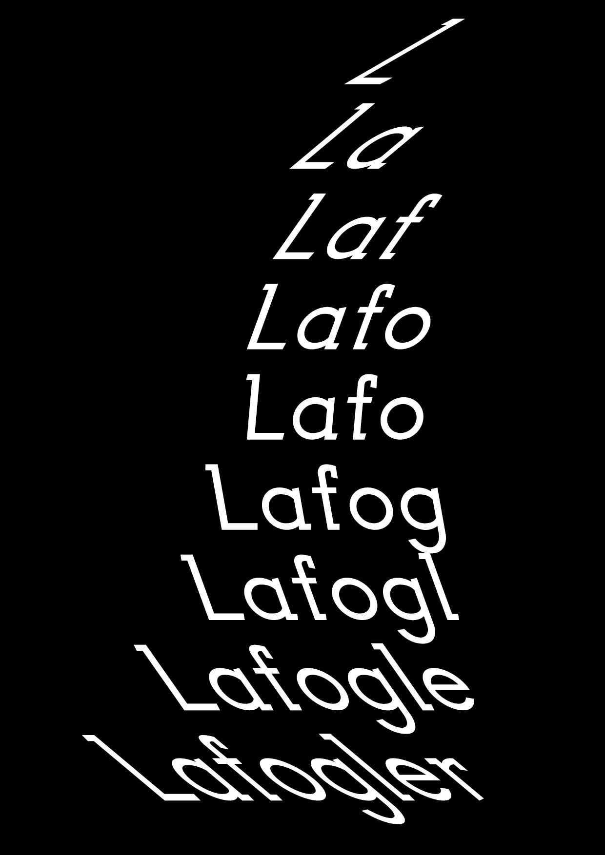 My first and so far my only font, that I have created. Labeled after my roommates family name. The typeface is reflecting her character traits: edgy but round and simple but complex.