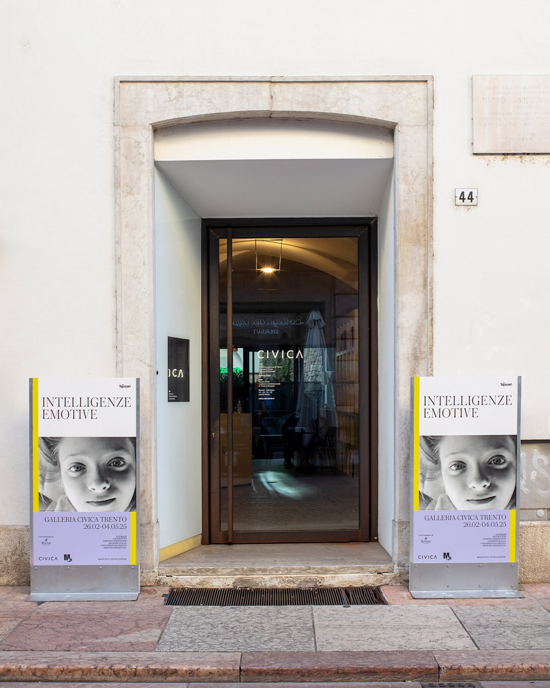 Banner of the "Intelligenze Emotive" exhibition in "Galleria Civica Trento"