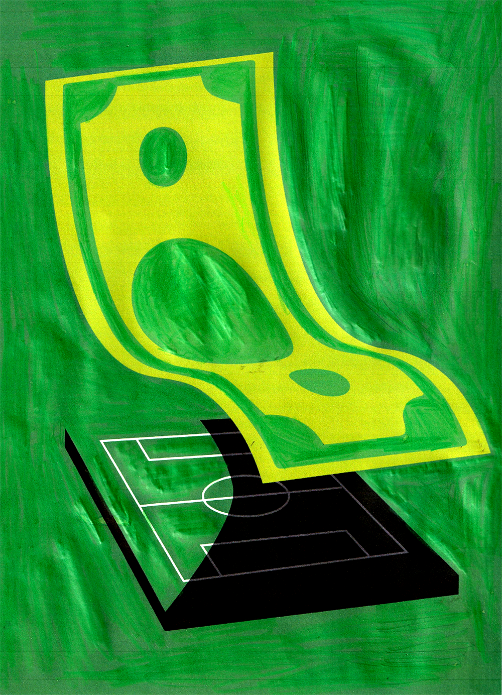 is a poster festival, drawing attention to social and international aberrations. This poster targets the overemphasis on money in soccer.